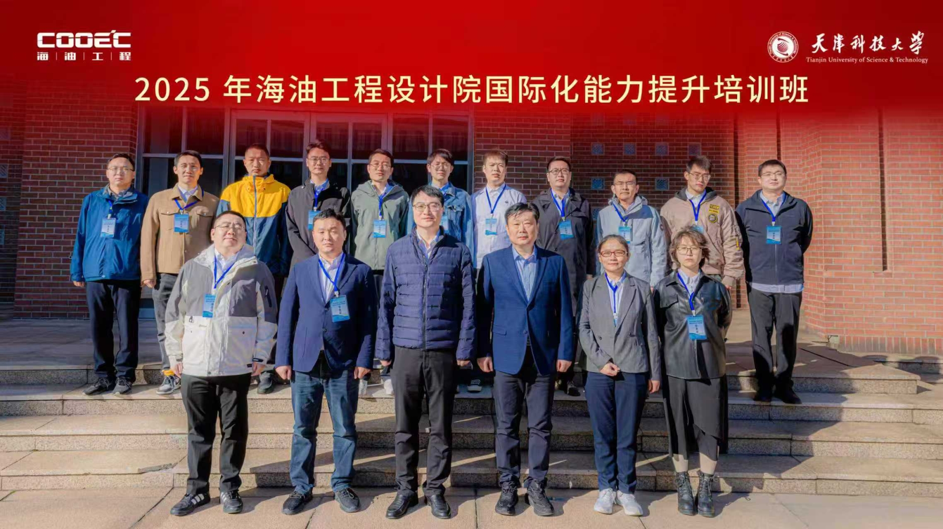 图1:海油工程设计院国际化能力提升培训班开班式 随后,刘坤代表海油工程设计院向学校表达诚挚感谢并致辞,指出当前设计院正处于快速发展的关键时期,在这一关键发展阶段启动国际化专项培训,兼具现实必要性与战略时效性。 此次设计院国际化能力提升培训为期5天,课程体系围绕 “全球视野、战略思维、专业能力、跨文化沟通”四大核心模块搭建,将多维度、全方位提升学员的国际化综合素养,以应对开拓海外市场挑战。 开班仪式结束后,校企双方领导与全体学员在校史馆前合影留念。