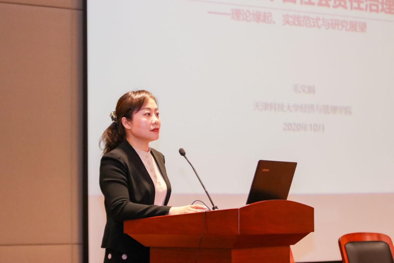 在报告中,天津工业大学环境经济与可持续发展研究中心主任张雪花教授就绿色债券融资及第三方认证对成本的影响做了专题报告,详细介绍了绿色债券定义、发展、认定标准、管理过程,以及绿色债券项目目录和绿色产业目录的进展情况,鼓励企业界充分利用国家给予的政策发展绿色事业。