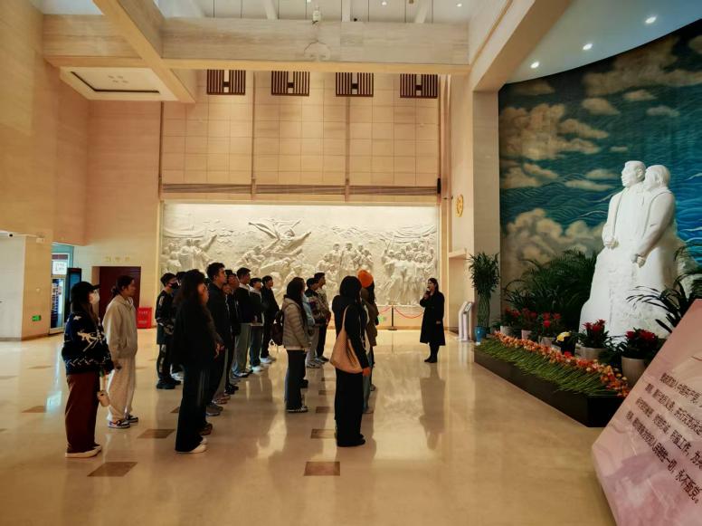 走进纪念馆,庄严肃穆的氛围扑面而来。大家首先在《情满江山》汉白玉雕像前驻足,认真聆听讲解员介绍周恩来、邓颖超两位伟人的生平概况,深切感受他们为国家和人民事业奉献一生的崇高情怀。