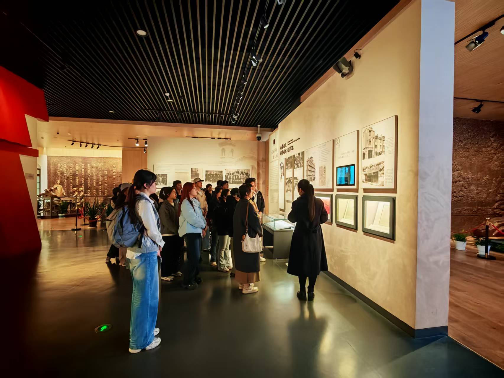 随后,大家在讲解员的引导下,依次参观了各个展厅,仔细观看展出的文物、照片、书信等资料。从周恩来青年时期求学救国的经历,到革命战争年代投身民族解放事业的历程;从新中国成立后操劳国家大事的身影,到邓颖超同志为妇女运动和公益事业奔波的足迹,每一段历史都让大家深受触动。 在西花厅复原场景前,大家认真端详伟人生活和工作的环境,感受他们勤俭节约、严于律己的优良作风;在历史影像展区,通过观看珍贵的视频资料,进一步直观了解了两位伟人的革命事迹和精神风范。